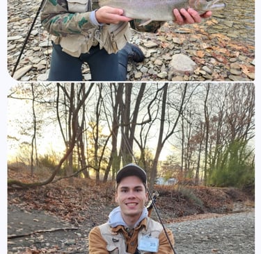 Mike H. and his son with a couple of nice fish caught in Elk Creek both on single red eggs. Thanks for sharing Mike!