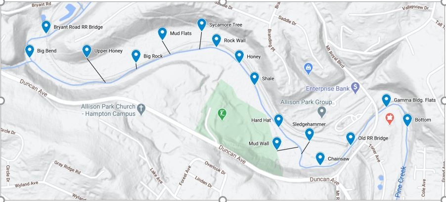 A map one of our members created (Jack) of the Pine Creek Delayed Harvest Area.