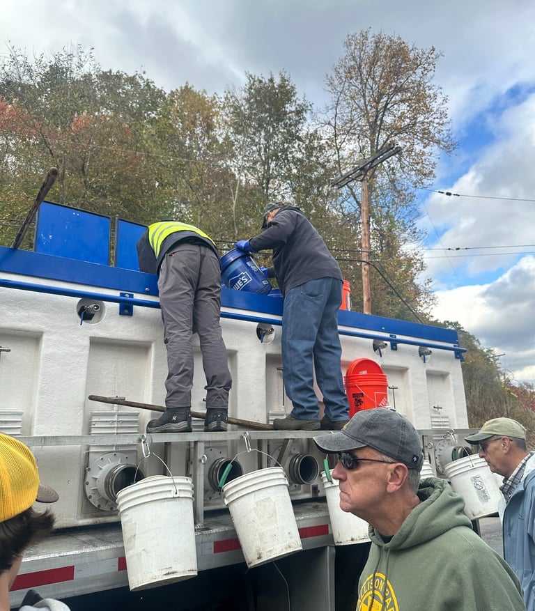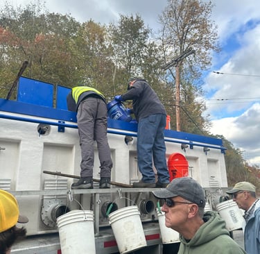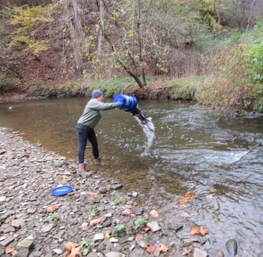 We had a great turnout for the stocking of the DHALO on Pine Creek on Tuesday. Ended up putting in 18 buckets of fish in total. Thanks to all who helped out.
