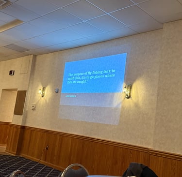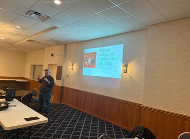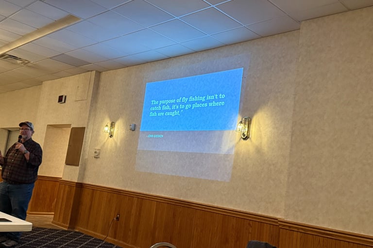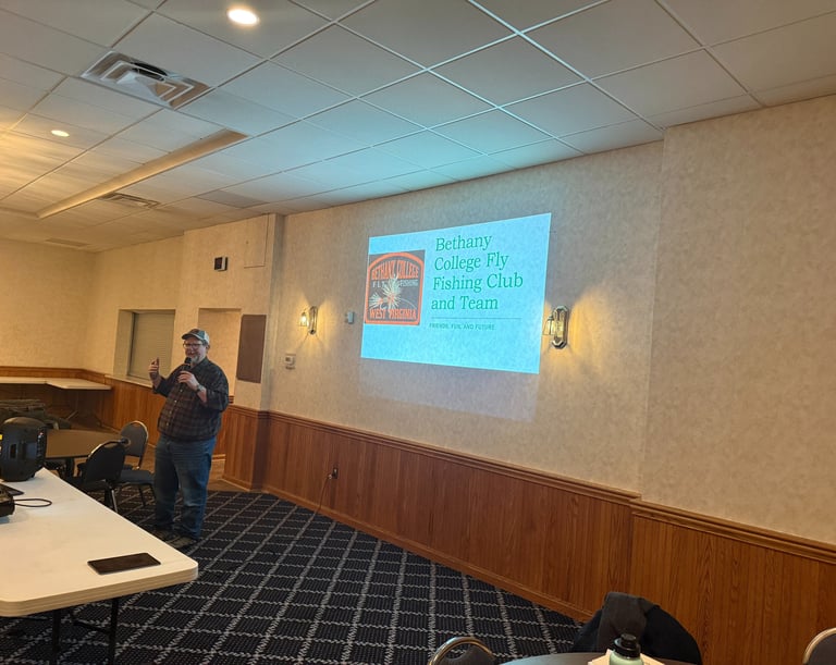 Jerry Stebbins from Bethany College spoke to the group about how he started a competitive fly fishing club at the school.